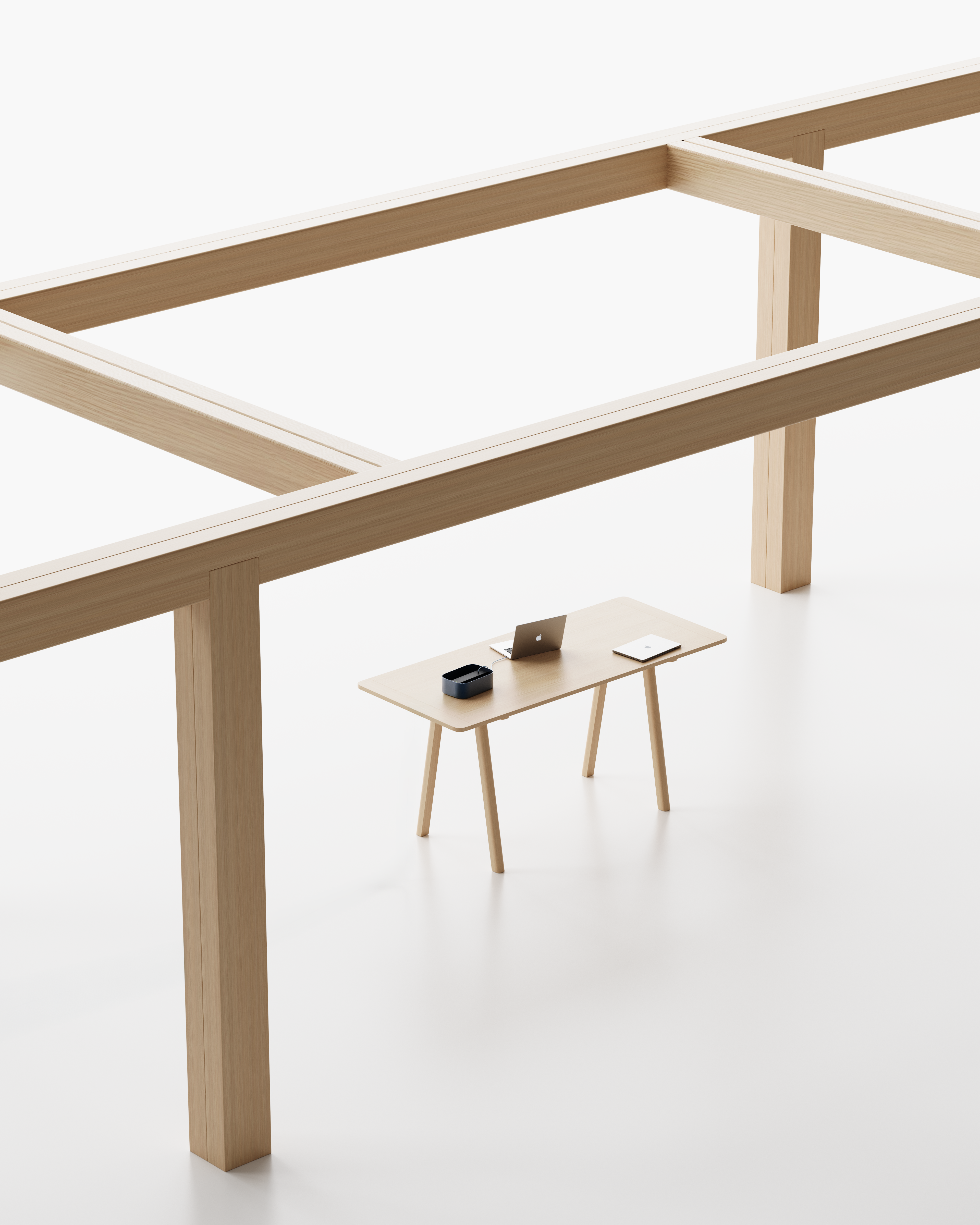 This table began as a study of timber connections—how things hold together with clarity, purpose, and simplicity. The result is a versatile piece for work, dining, or meeting, formed by structural thinking and careful detail.