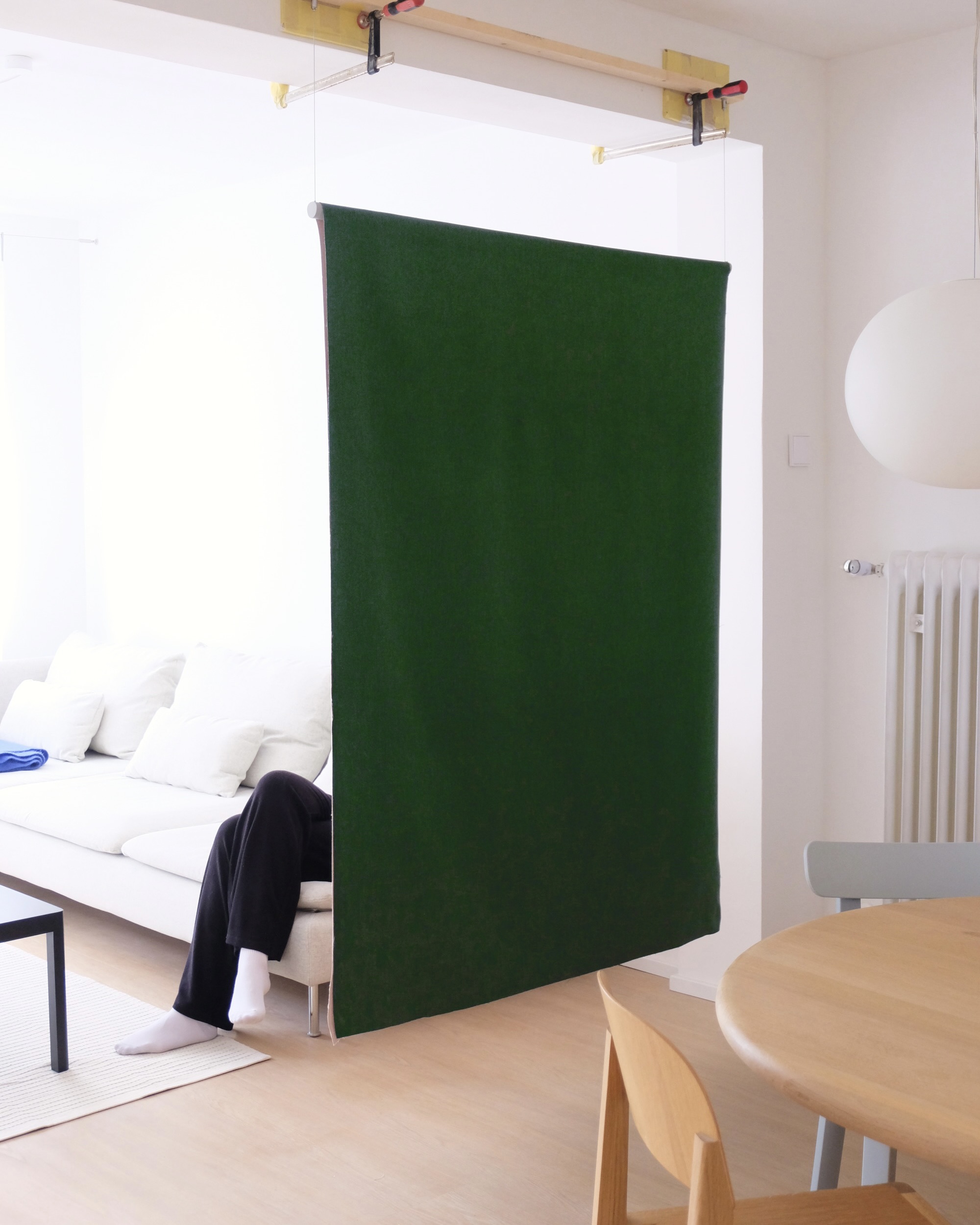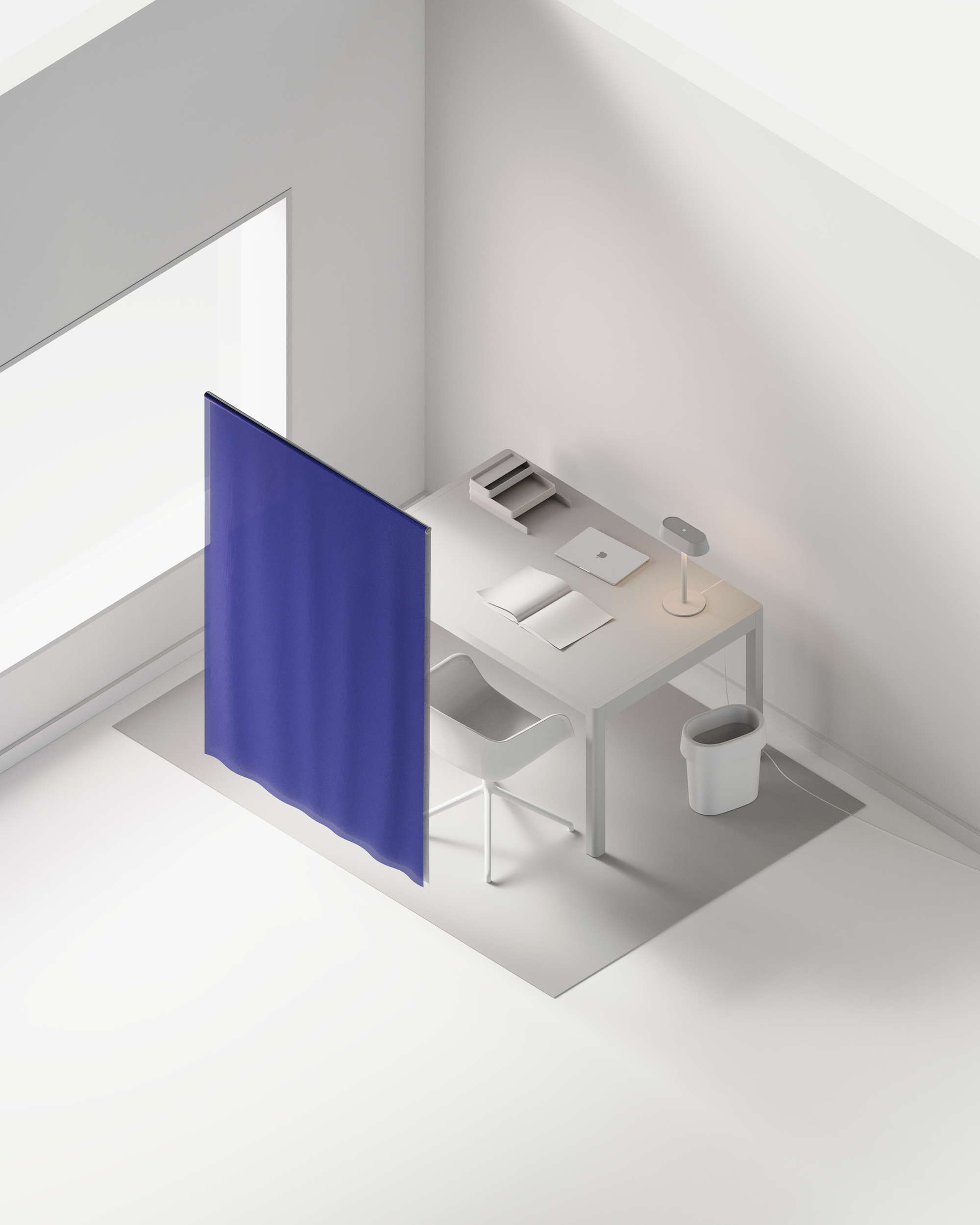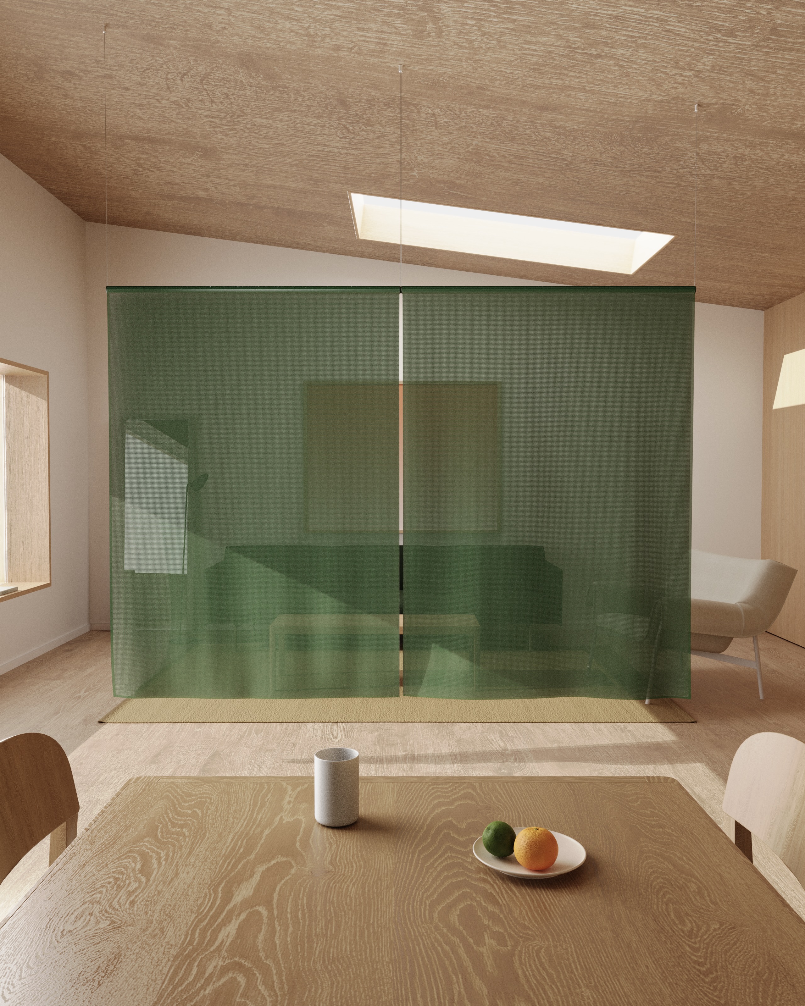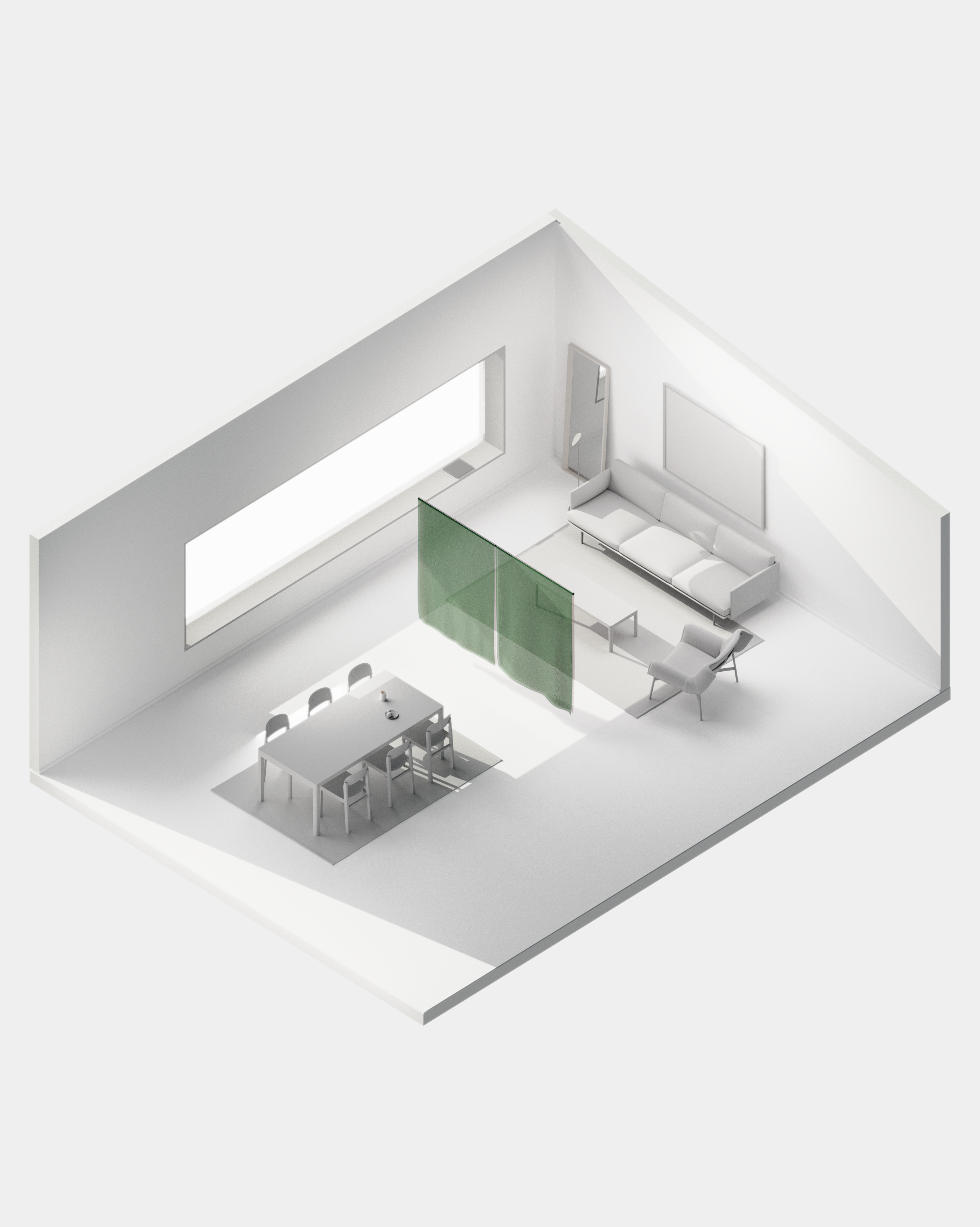 A soft, modular room divider that brings quiet structure and visual rhythm to open spaces. Veil offers separation without isolation—balancing openness and intimacy through layered textile and a minimal ceiling fixture. Designed to adapt, respond, and move with life, Veil creates space within space—quietly framing the everyday.