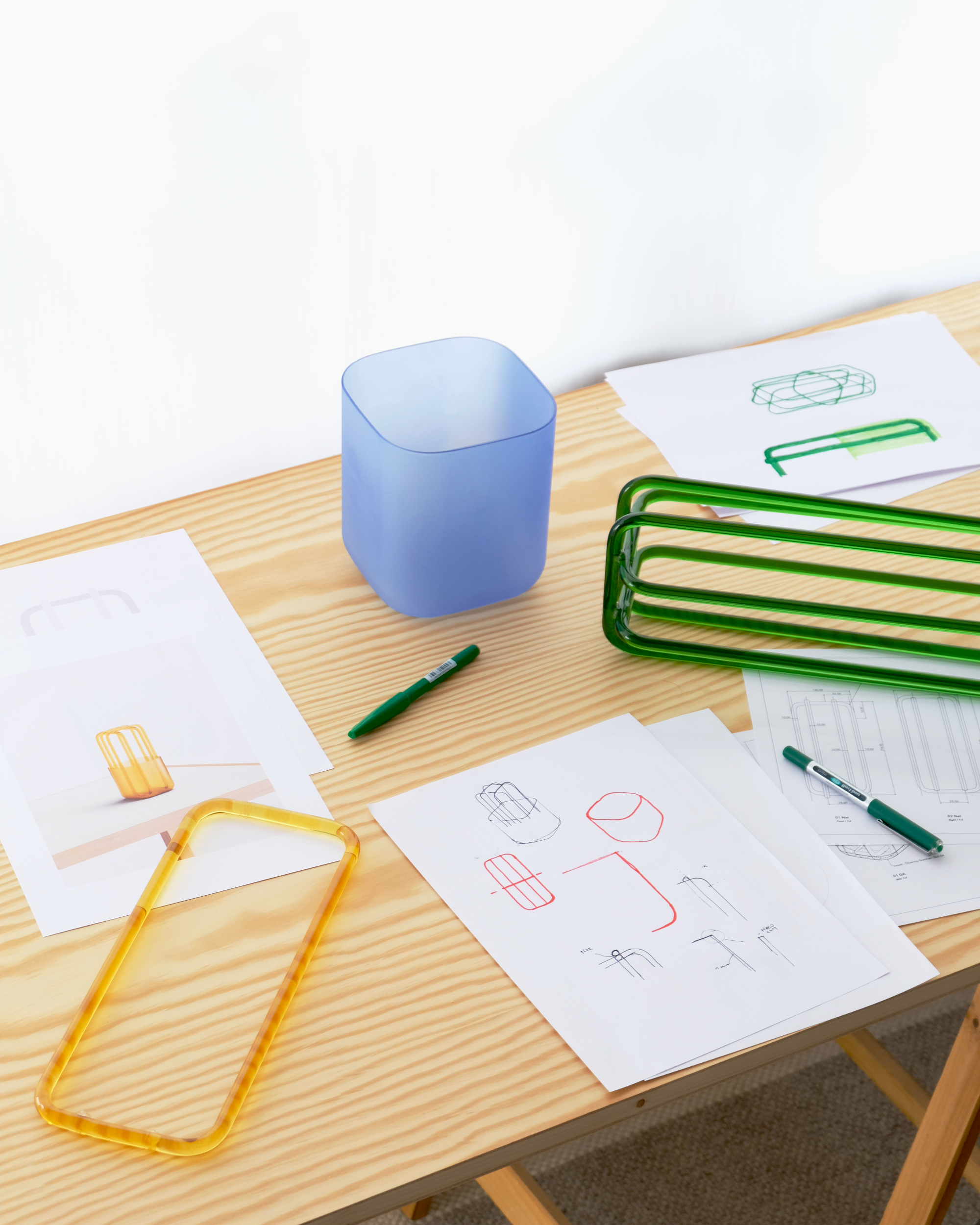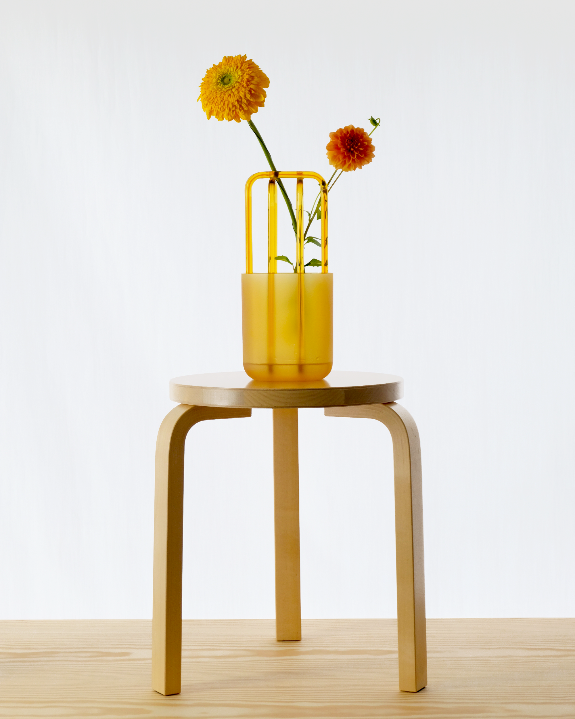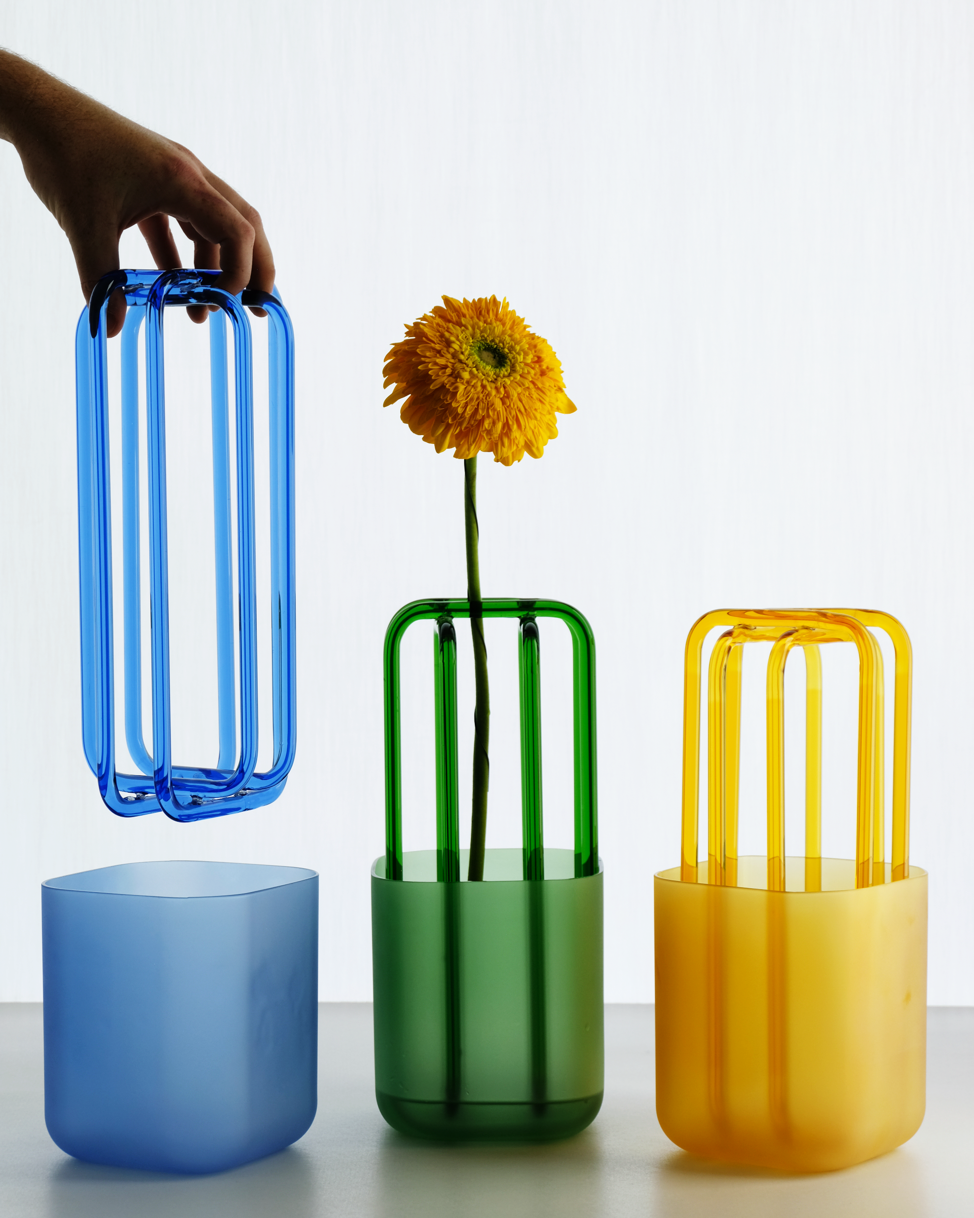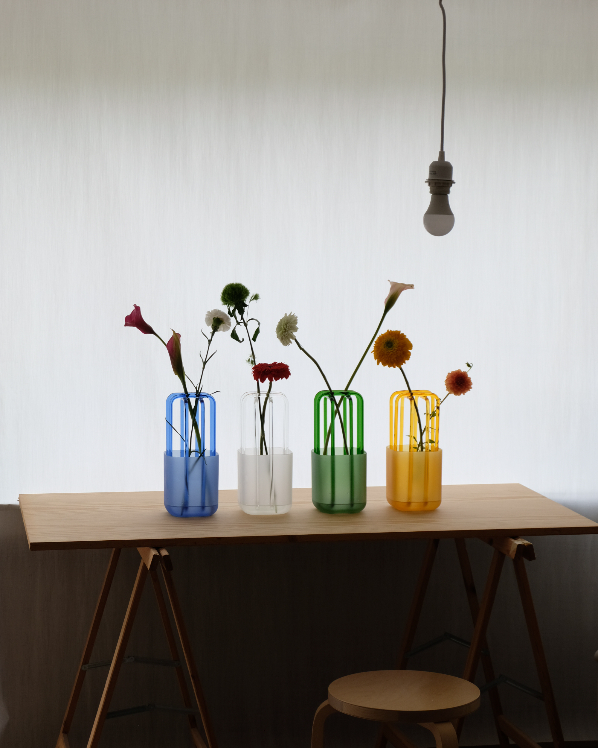 Rila is a composition of two elements, a container and a structure, which together form a small architecture for flowers — a base and a grid, water and air. The stems are guided and held in place, yet remain free, never fixed. It is about finding balance between order and spontaneity, creating a fragile landscape inside a simple frame.